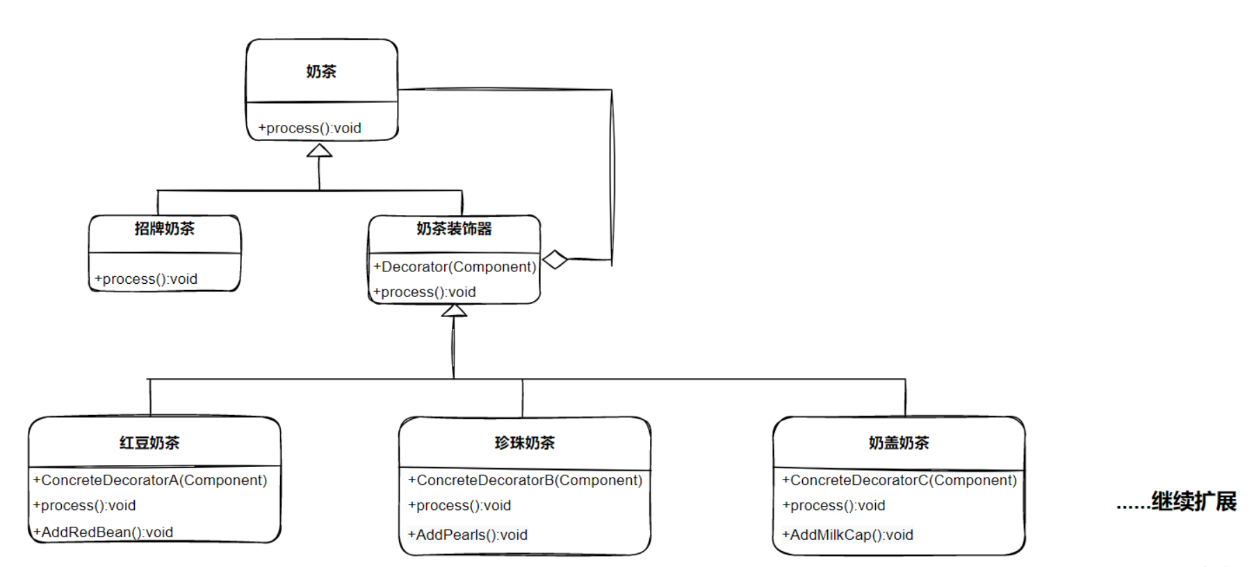 装饰器模式通过将一个对象包装在装饰器对象中来扩展功能,而不需要修改对象的类代码。这种模式提供了一种灵活的方式来扩展或增强对象的行为。在下一部分中,我们将通过Java代码示例来展示装饰器模式的具体实现。