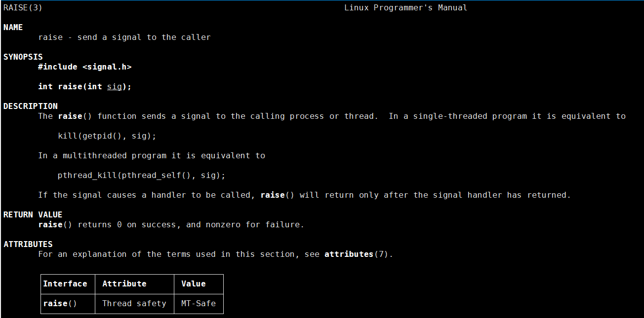 头文件: #include <signal.h> 函数原型: int raise(int sig);