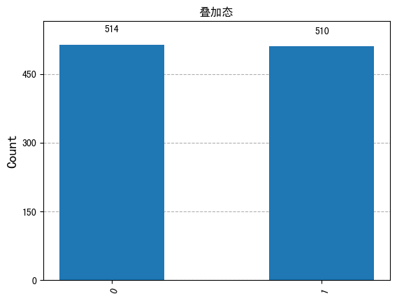 plot_histogram(counts, title='叠加态') # 绘制测量结果直方图