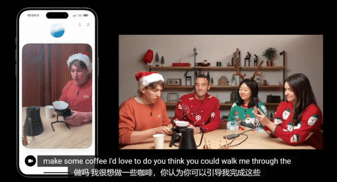 OpenAI 的视频模式感觉就像 Facetime 这样的视频通话,因为 ChatGPT 会实时响应用户在视频中展示的内容。它可以看到用户周围的事物,识别物体,甚至记住自我介绍的人。在 OpenAI 的“12 Days of Shipmas”活动的一部分中,ChatGPT 使用视频功能帮助冲泡咖啡。ChatGPT 看到了咖啡用具,指示何时放入过滤器并对结果进行评论。