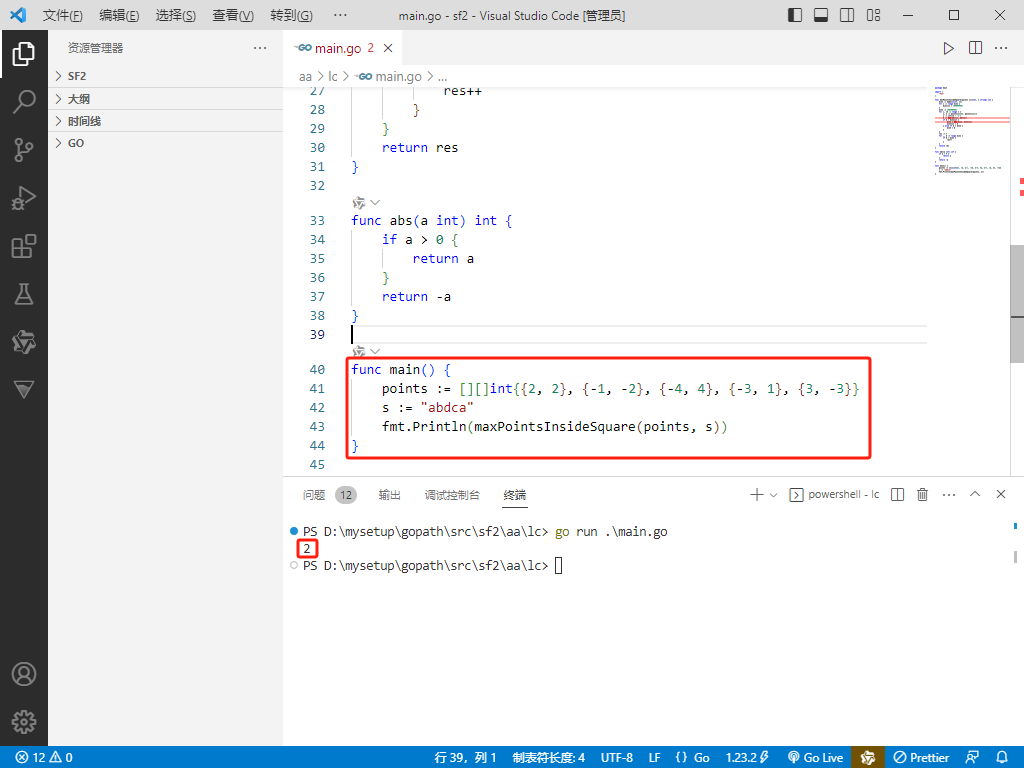 2024-12-18:正方形中的最多点数。用go语言,给定一个二维数组 points 和一个字符串 s,其中 points[i] 表示第 i 个点的坐标,s[i] 表示第 i 个点的标签。