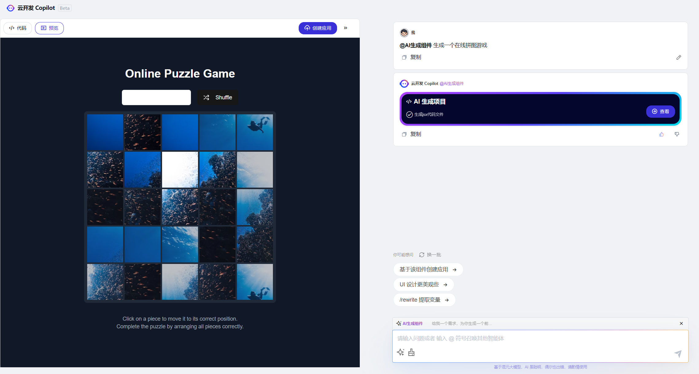 根据以上提示, Copilot 生成的代码可以创建为一个应用。