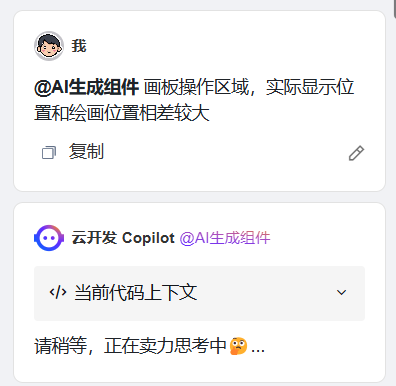 打开云开发 Copilot,输入“在线画板”作为项目描述,Copilot 会自动生成基础的项目代码结构。