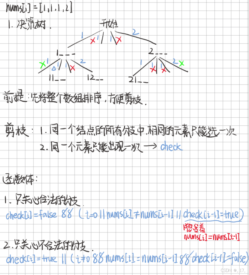 sort(nums.begin(), nums.end())。check 的大小为 nums.size(),初始值为 false。dfs(nums, 0)。ret。如图分析: