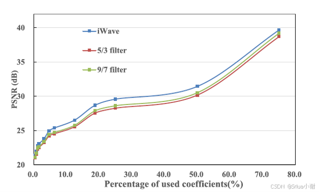 图6 iWave与JPEG2000使用5/3滤波和9/7滤波对比
