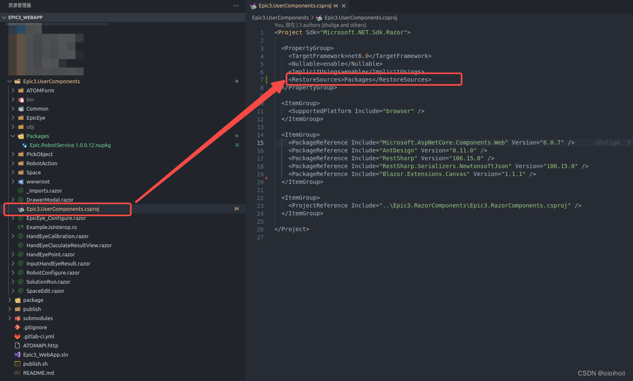 其中Packages为刚刚所创建的文件夹名称,和*.csproj在同一级目录,RestoreSources标签代表可以从本地指定文件夹中引入nuget包。