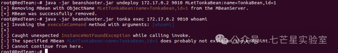 最后我们要对加载的恶意的MBean做一个清理处理(根据上面的Object名称来传参)