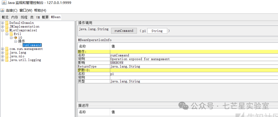 publicinterfaceEvilMBean{publicStringrunCommand(Stringcmd);}