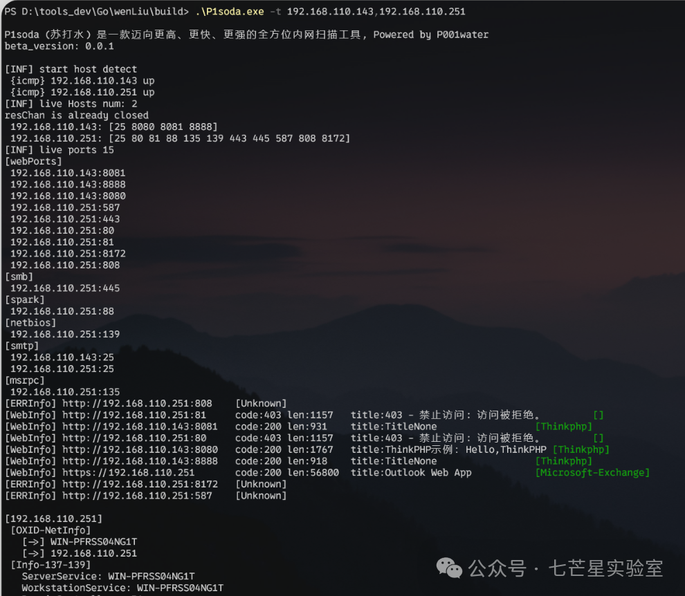 P1soda.exe -t 192.168.110.2-235 // 多个目标