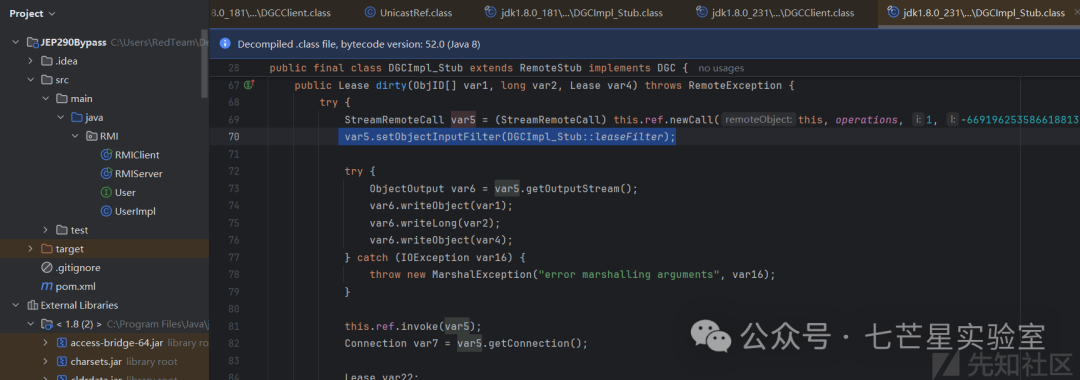 在JDK8u231的dirty函数中多了setObjectInputFilter过程,所以用UnicastRef就没法再进行绕过了