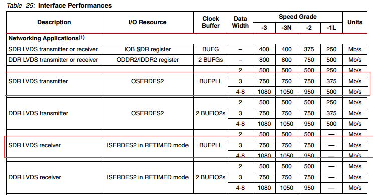 若要实现高速通信的场合,可以利用FPGA内部自带的SelectIO资源,利用ISERDESE2、 OSERDESE2,实现串-并,并-串的转换,理论速度可达到750Mbs,