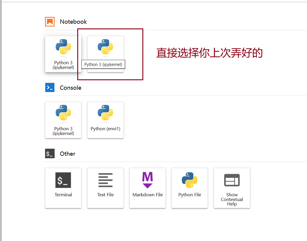现在进来是base环境,但是我峨嵋你要用的是envi1,所有先激活一下,然后的口令是Python 中安装一个新的 IPython 内核,并且将这个内核与 Jupyter Notebook 或 Jupyter Lab 关联起来