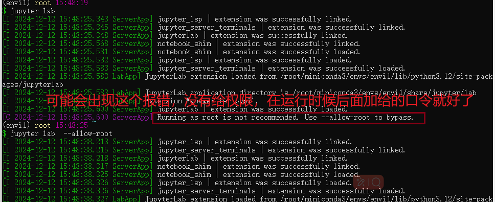 因为之前不是在自己建立的普通用户里面进行的conda 安装,因此现在在新的普通用户没有conda只能在一开始默认的用户做这些啦