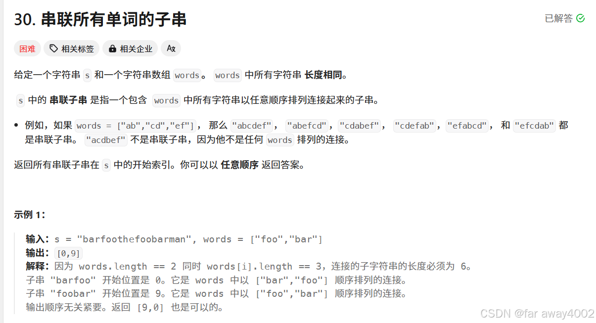 题目链接:30. 串联所有单词的子串 - 力扣(LeetCode)