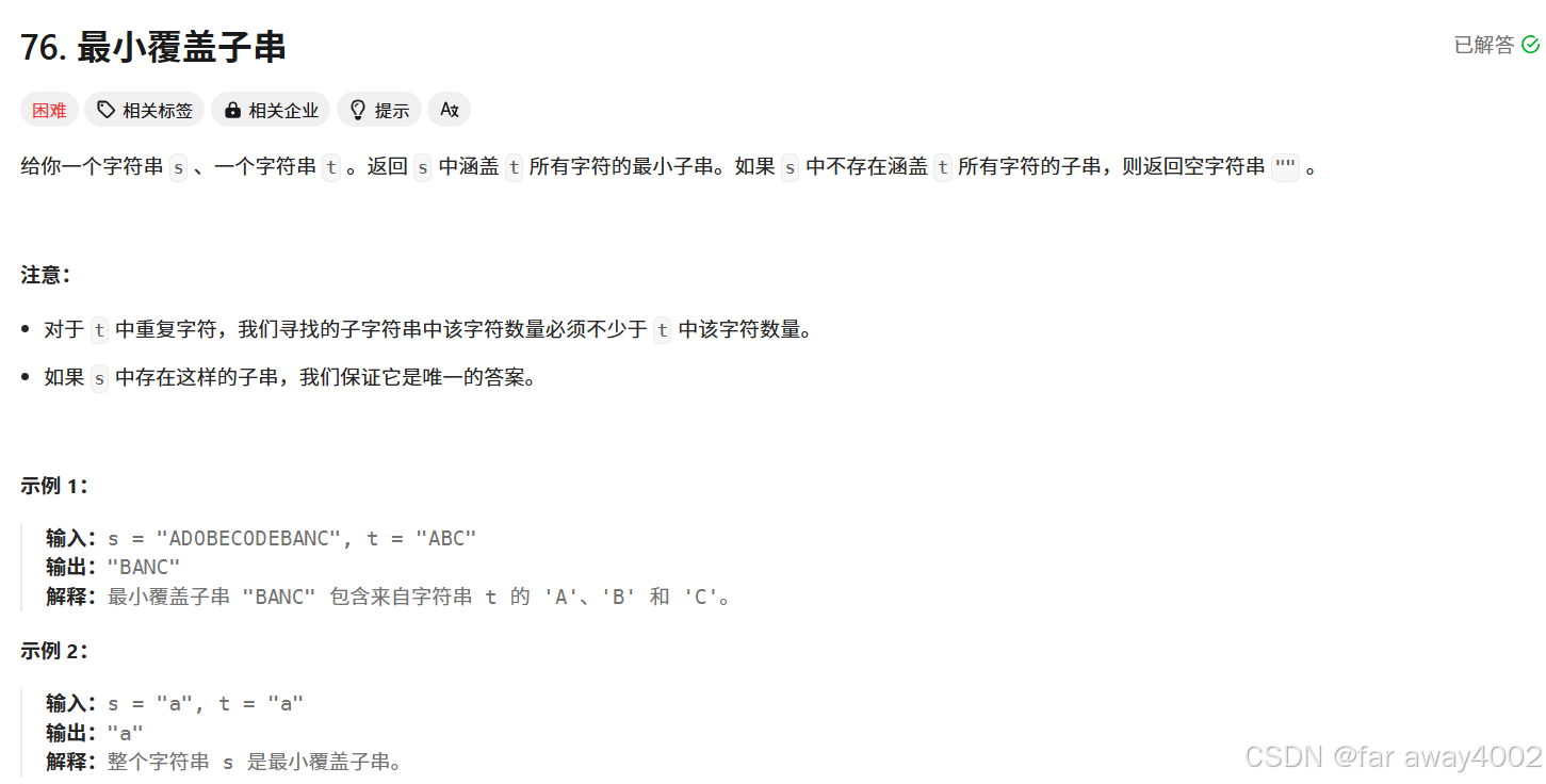 题目链接:76. 最小覆盖子串 - 力扣(LeetCode)