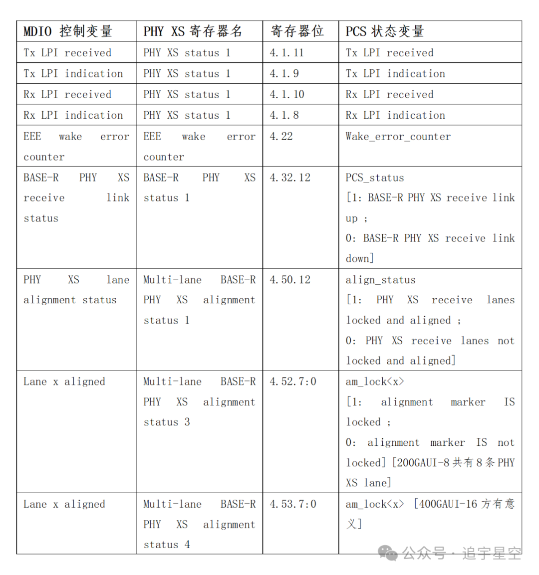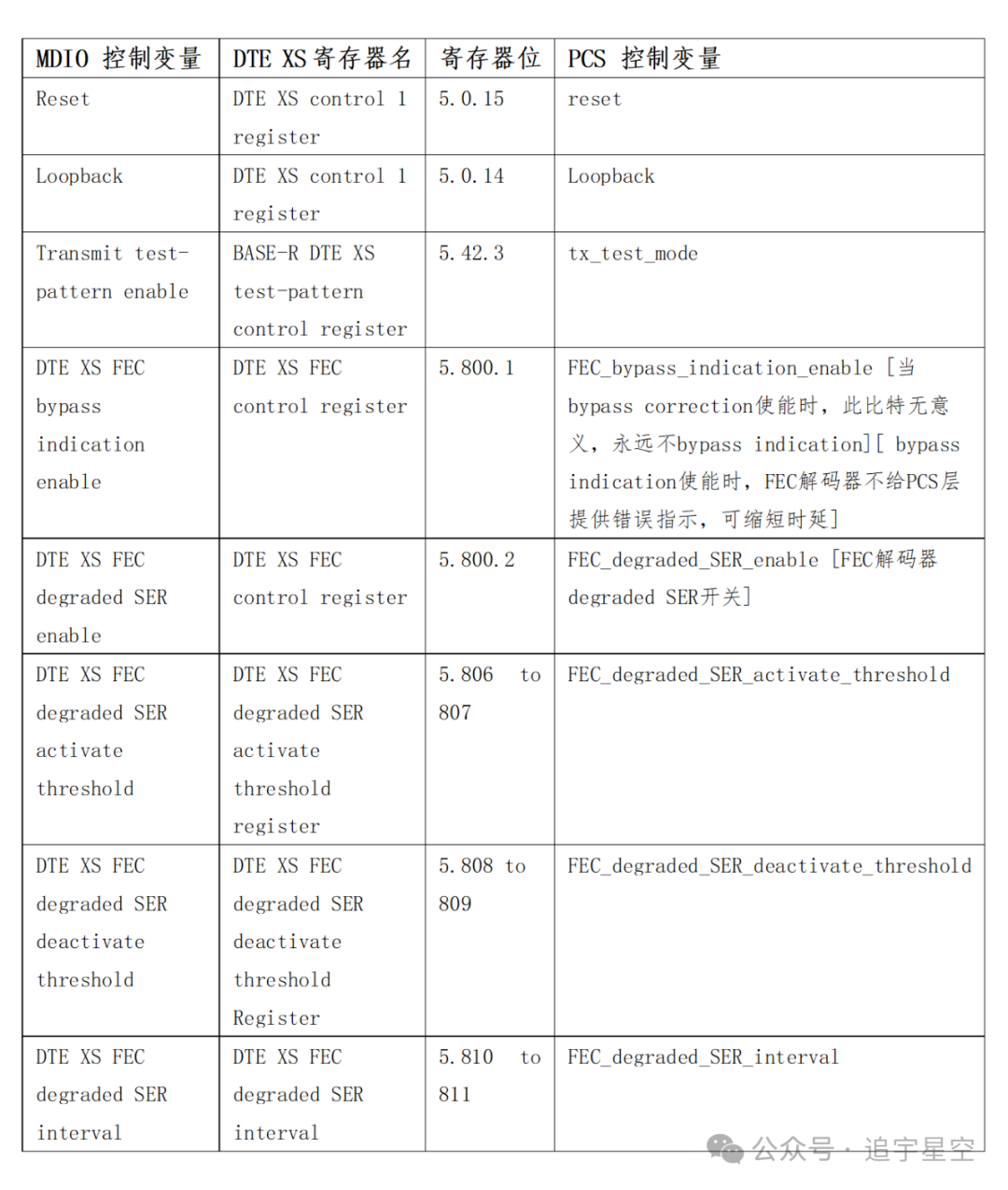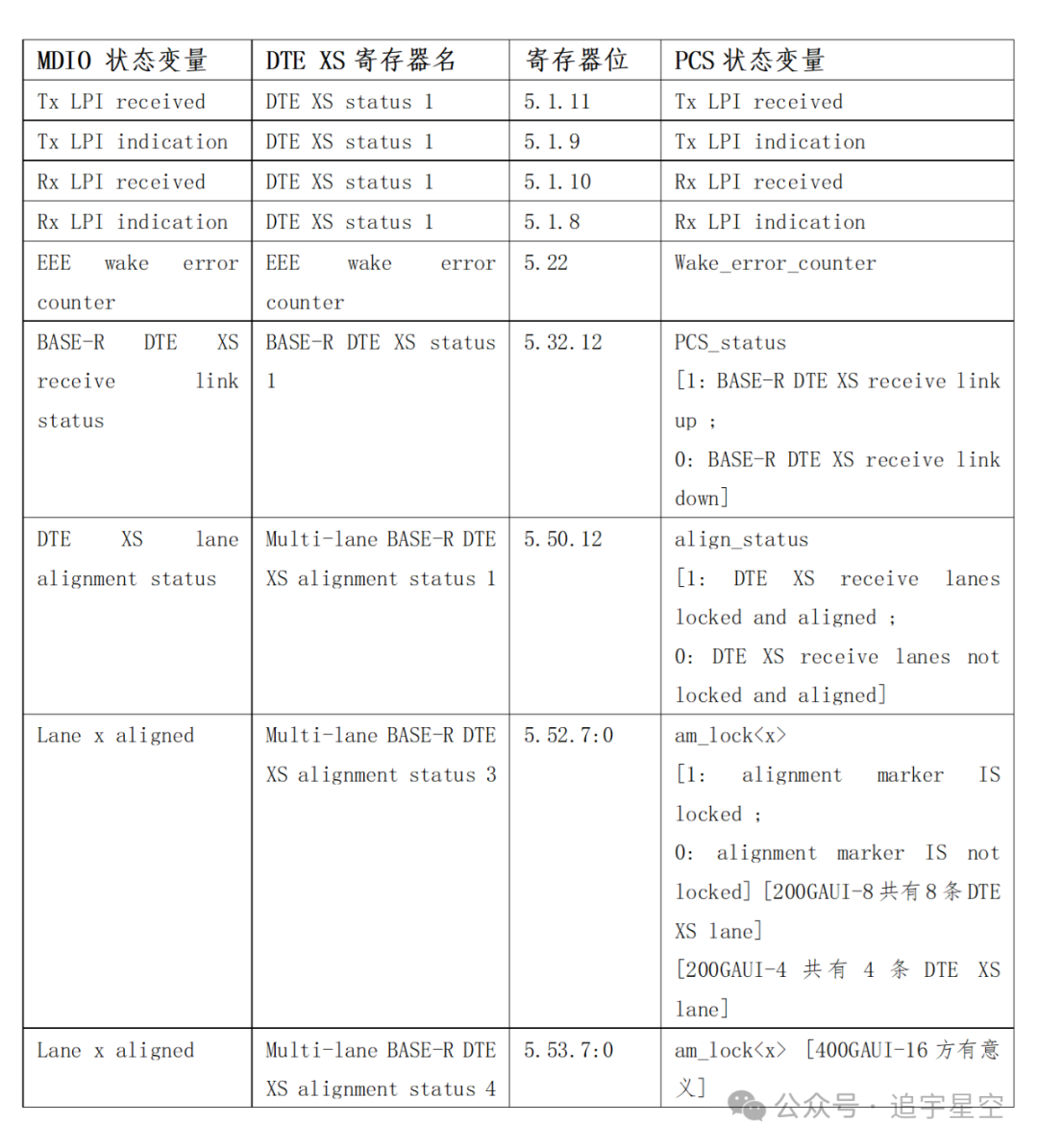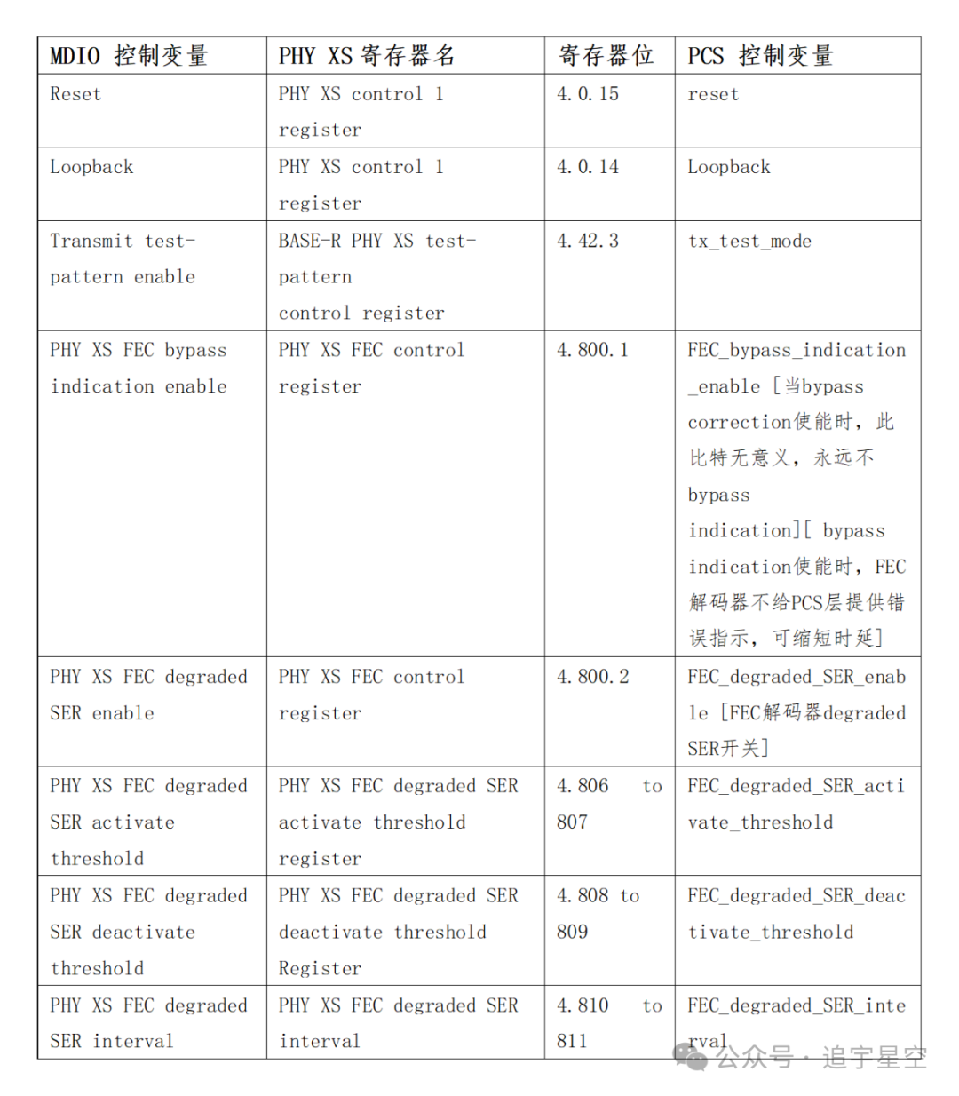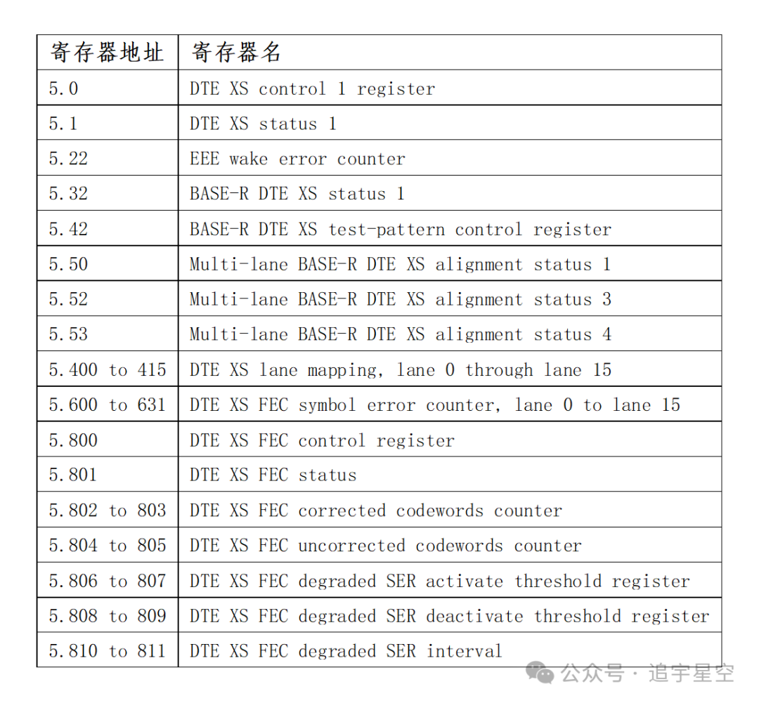 与XS相关的寄存器集中在C45寄存器MMD=4(PHY XS)和MMD=5(DTE XS)里。下面对MMD4和MMD5做一个简单的介绍。