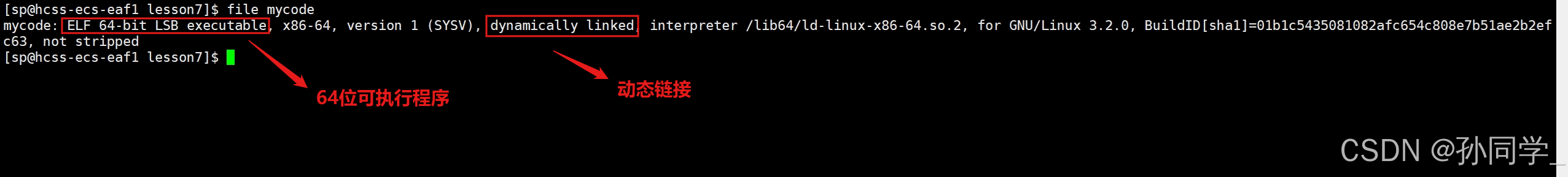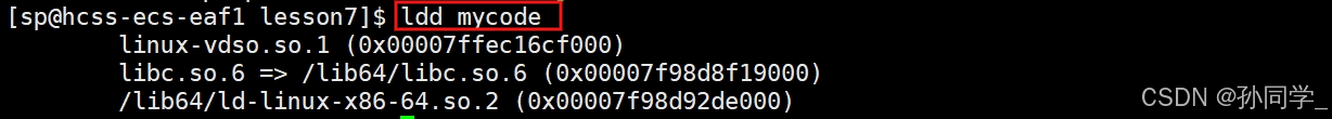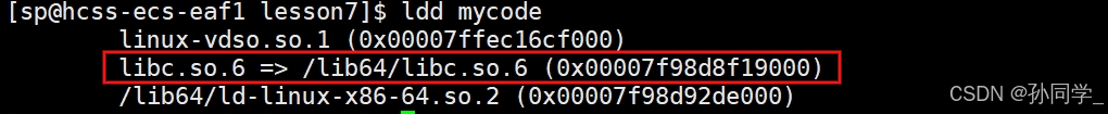 我们进行ldd mycode就可以发现我们最终的可执行程序在链接时依赖了什么文件