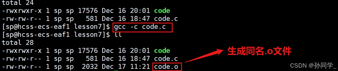 在我们的gcc命令中,如果你直接-c既没有-E也没有-s,那么他就会帮我们进行预处理,编译,汇编然后停下来;如果直接-c并且也没有带生成目标文件,那么编译器回自动帮我们形成同名.o文件。