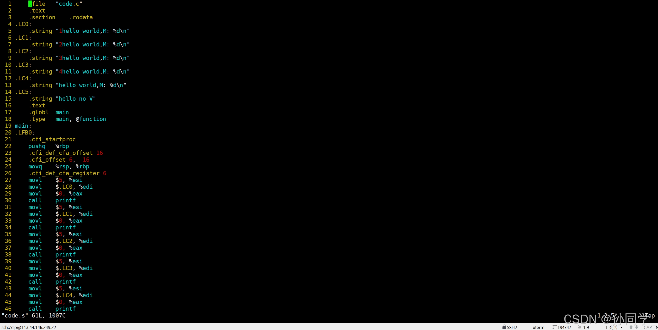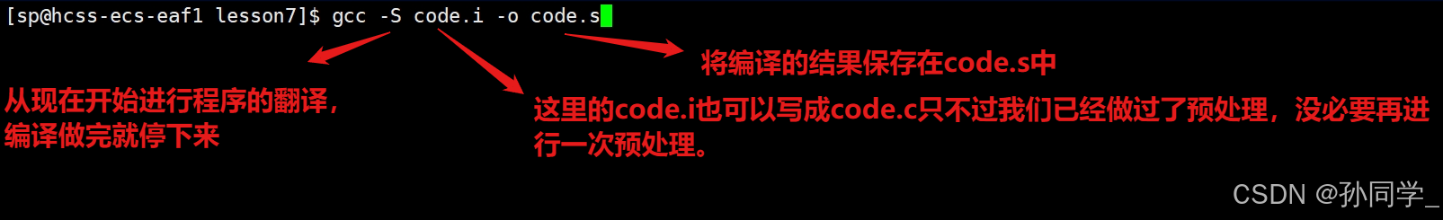 -S选项来进行查看,该选项只进进编译而不进行汇编,生成汇编代码。gcc –S code.i –o code.s 例如:gcc -S code.i -o code.s