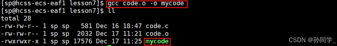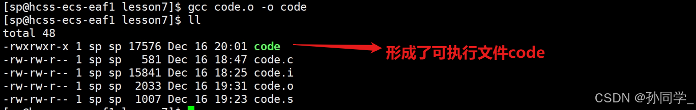 可是我们怎么没见到链接什么库呢?首先我们今天用的工具是gcc,我们code.c中写的printf函数全是c语言中的库,并没有使用第三方的库,gcc是专门用来编译c语言的,所以它在自己内部就能找到c语言的标准库在哪。在这里体现不出来。我们只需知道在这里它隐性地把我们的code.o文件和c标准库形成一个可执行程序,至此我们就完成了程序的翻译。