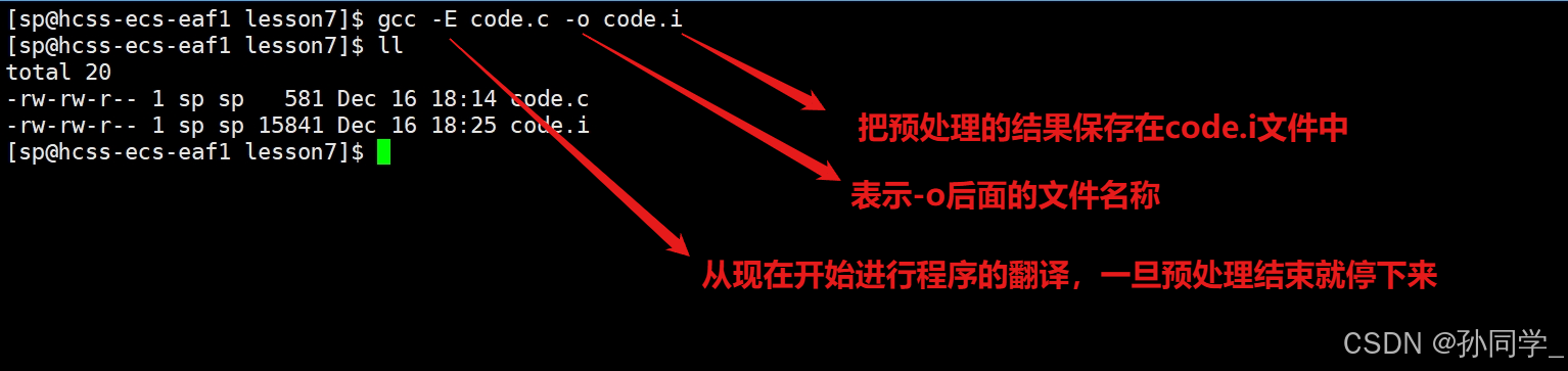 所以我们可以带个-o,保证它把输出结果保存在我们的目标文件code.i中。