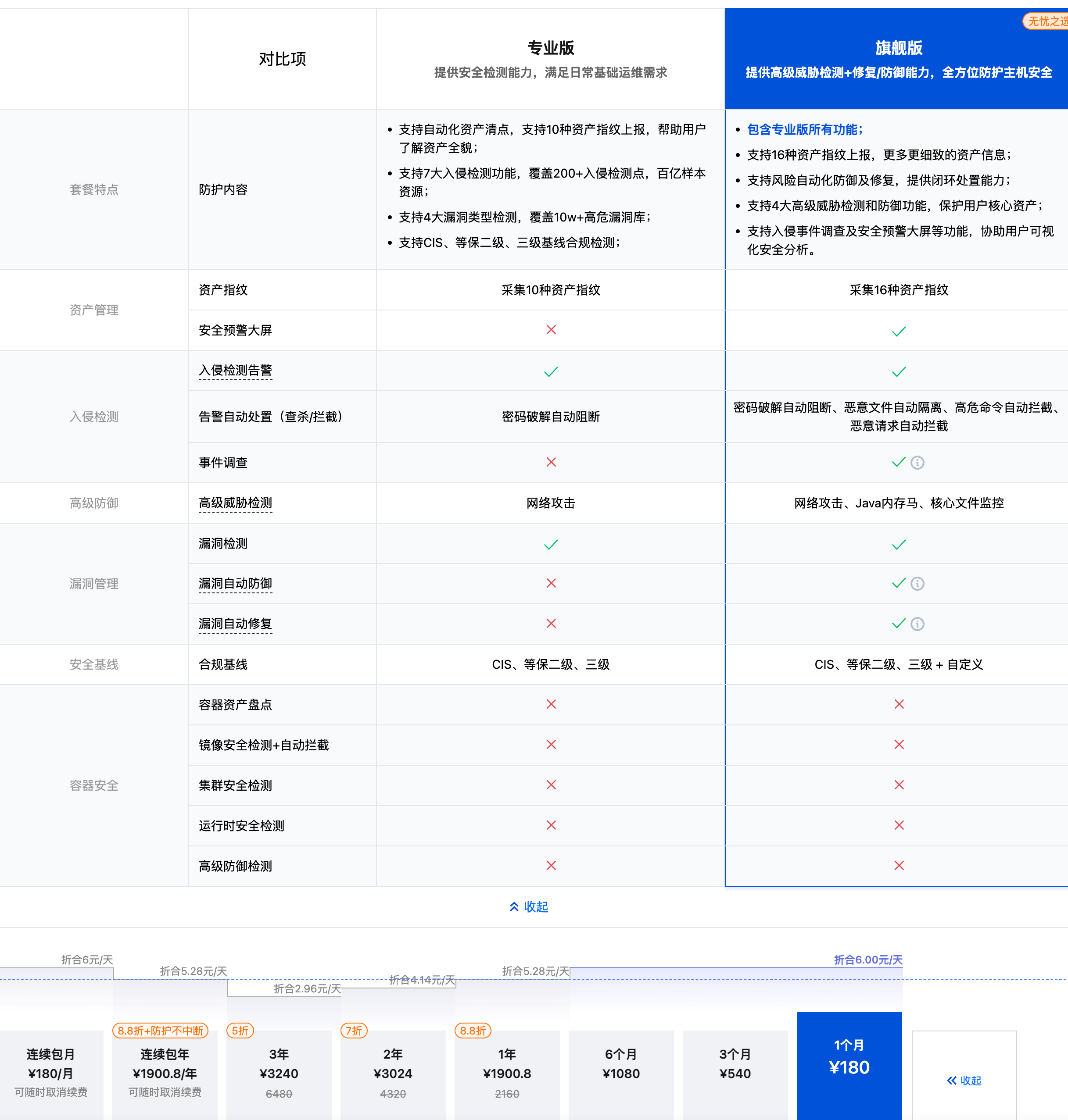 * **主机安全产品购买**:文章介绍了如何购买腾讯云主机安全产品,包括专业版和旗舰版的选择,以及购买流程。