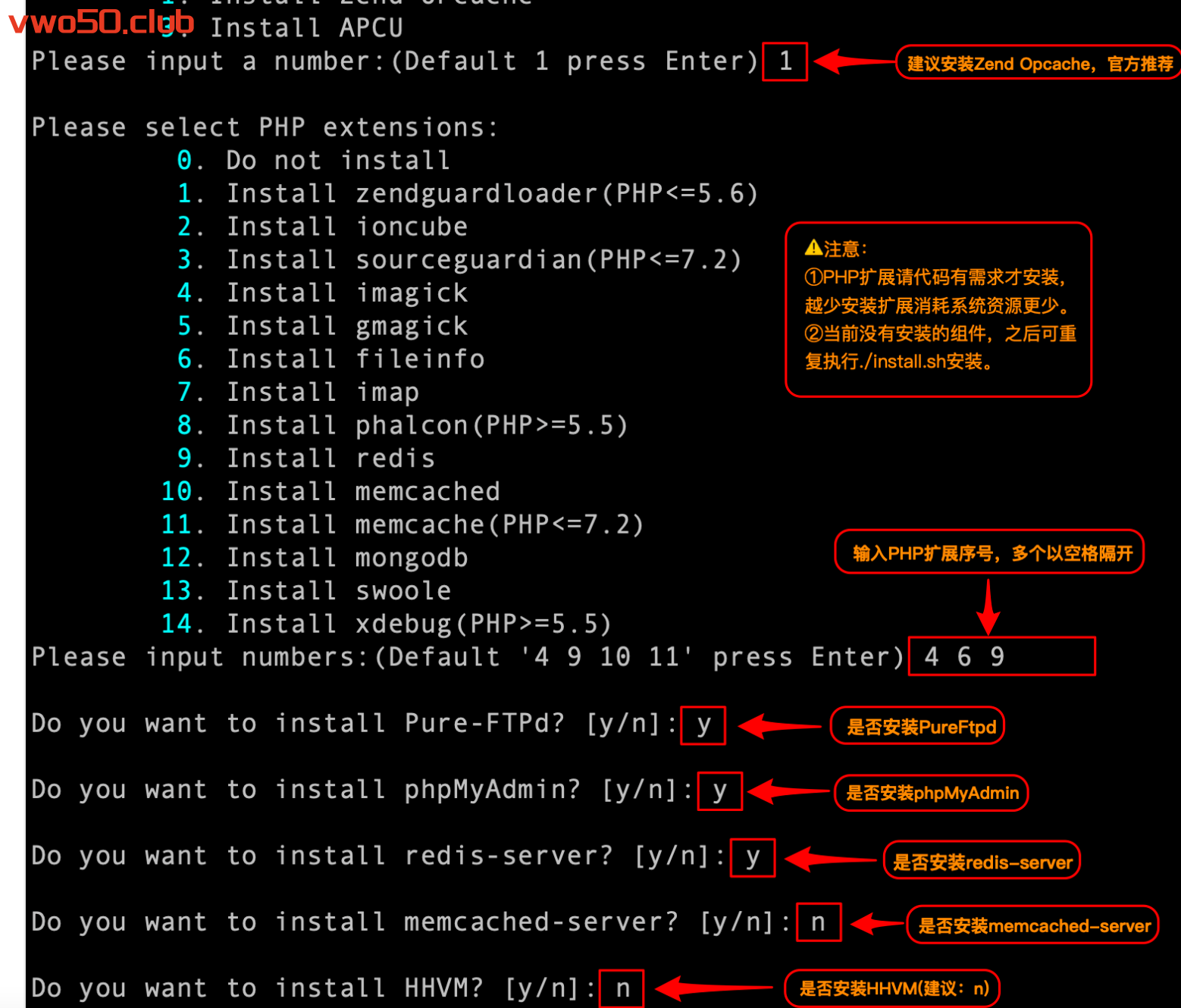 yum -y install wget screen #for CentOS/Redhatwget http://mirrors.oneinstack.com/oneinstack-full.tar.gz 然后解压 tar xzf oneinstack-full.tar.gz 进入目录 cd oneinstack screen -S oneinstack./install.sh 即可自动安装的好处是一键安装,傻瓜式, 交互式安装的好处是,可以自己进行选择,各有优势。可以根据自己的喜好来进行选择安装即可,接下来是交互式安装的截图