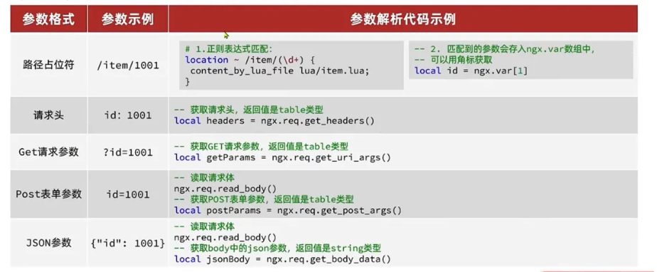 在openResty中提供了一些方法来获取不同地方的参数。例如:
