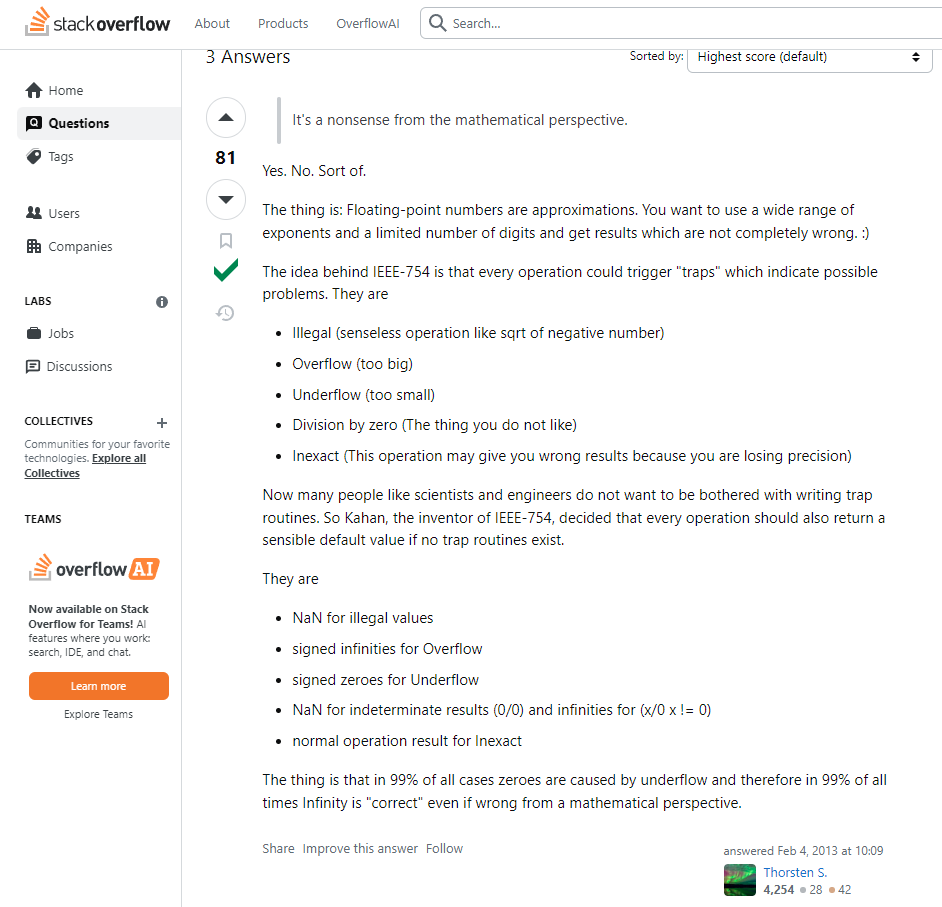 0 / 0 = NaN这种设计确保了浮点数运算的稳定性。如果浮点数除法抛出异常,程序可能会在执行大量运算时意外崩溃。而返回 Infinity 或 NaN 则允许开发者继续处理这些值,或者在程序中进行进一步判断。