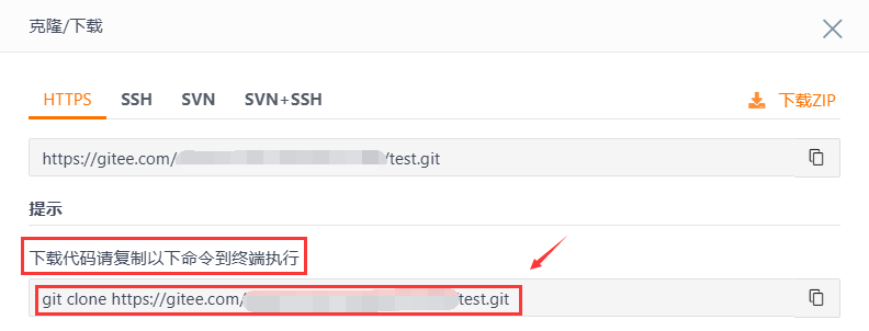在你的新建的仓库界面找到 clone 到本地的终端指令