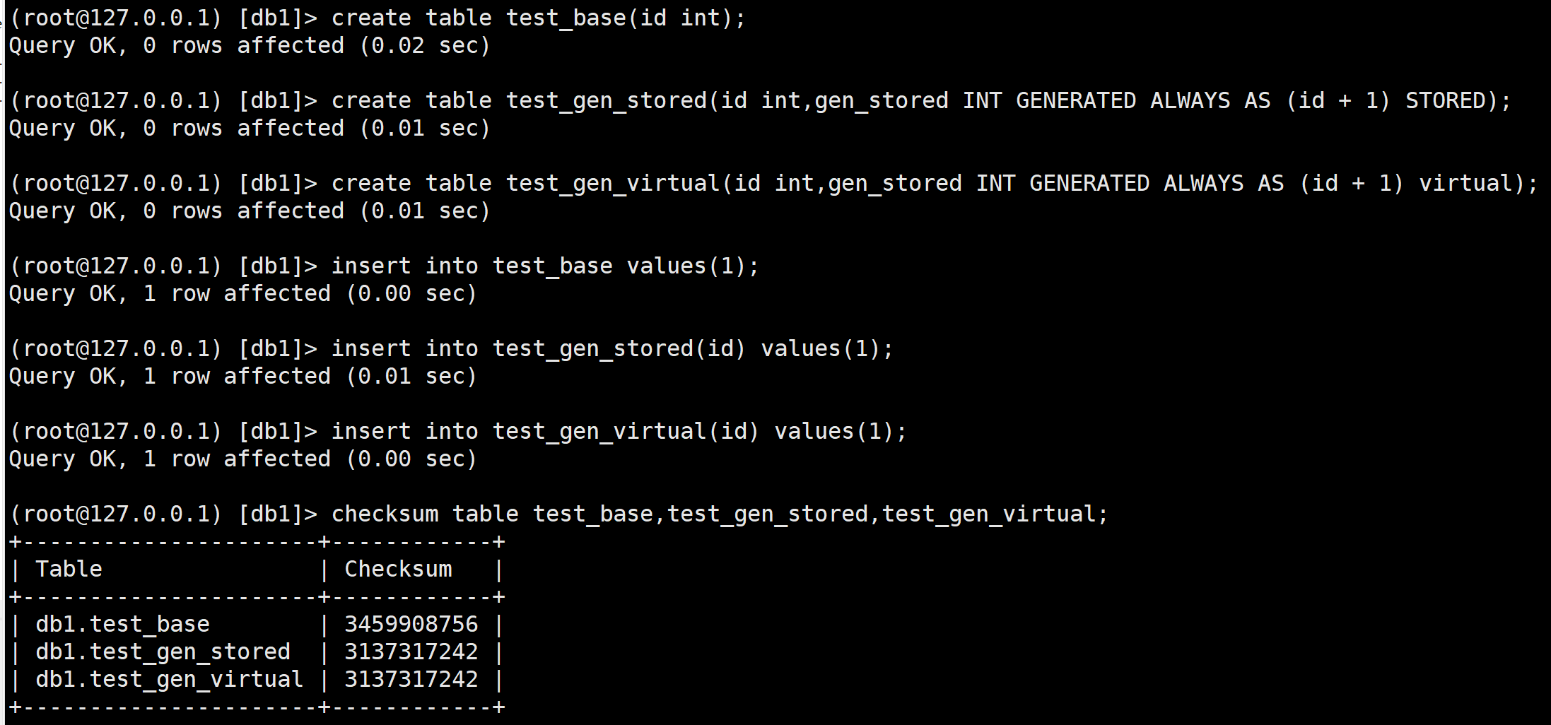 checksum table test_base,test_gen_stored,test_gen_virtual;