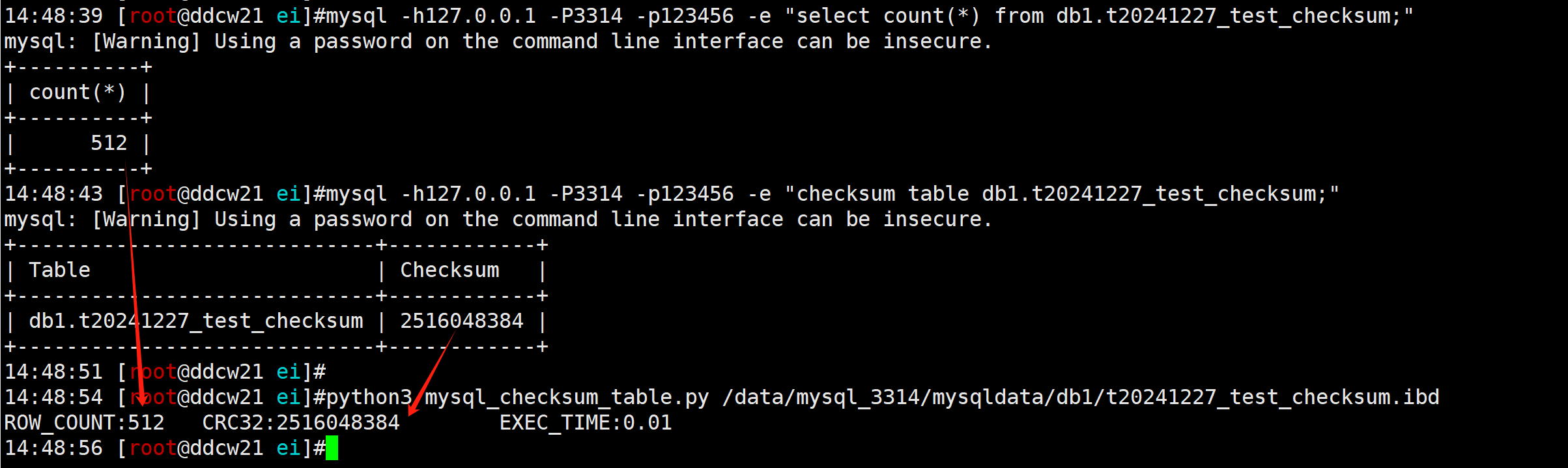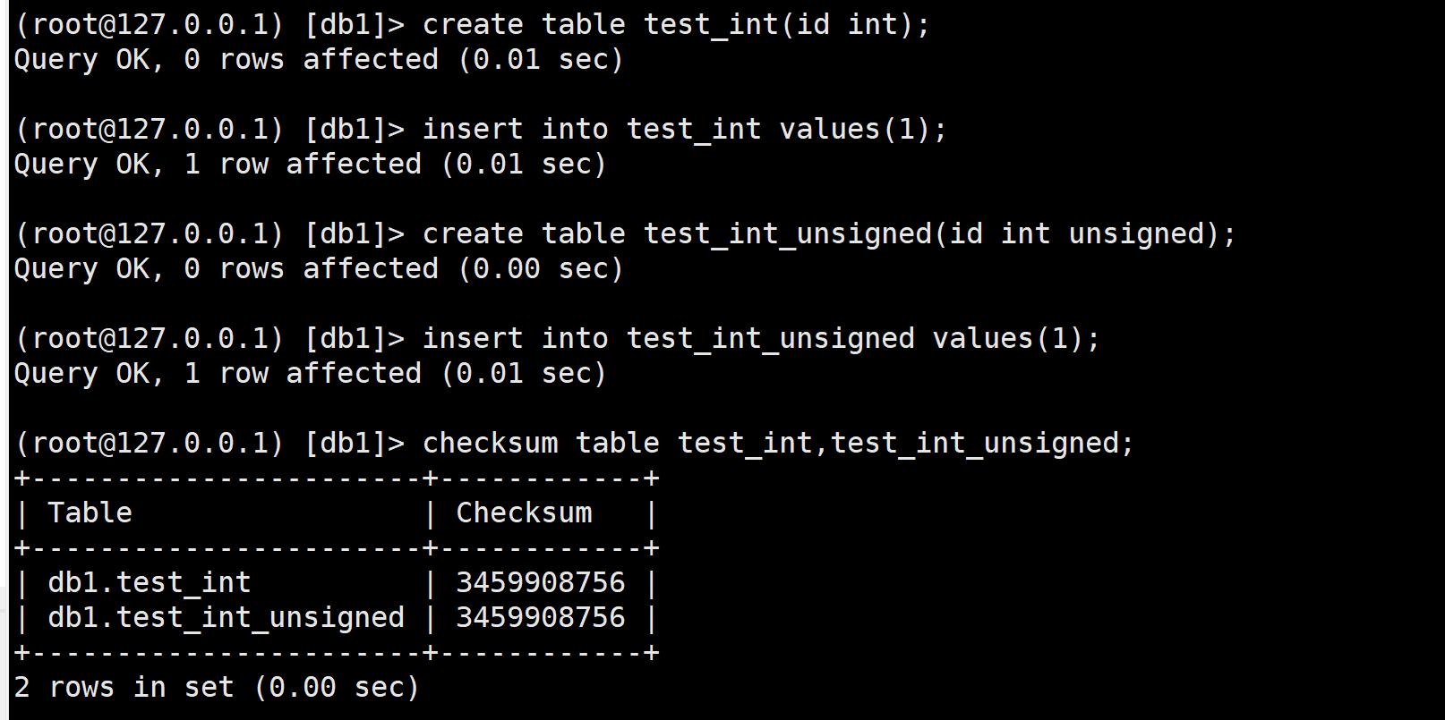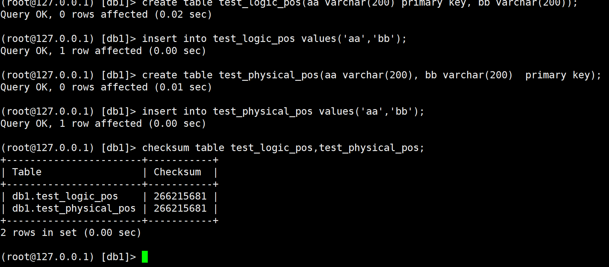 我们可以看到明明插入的一样的数据, checksum值居然不一样