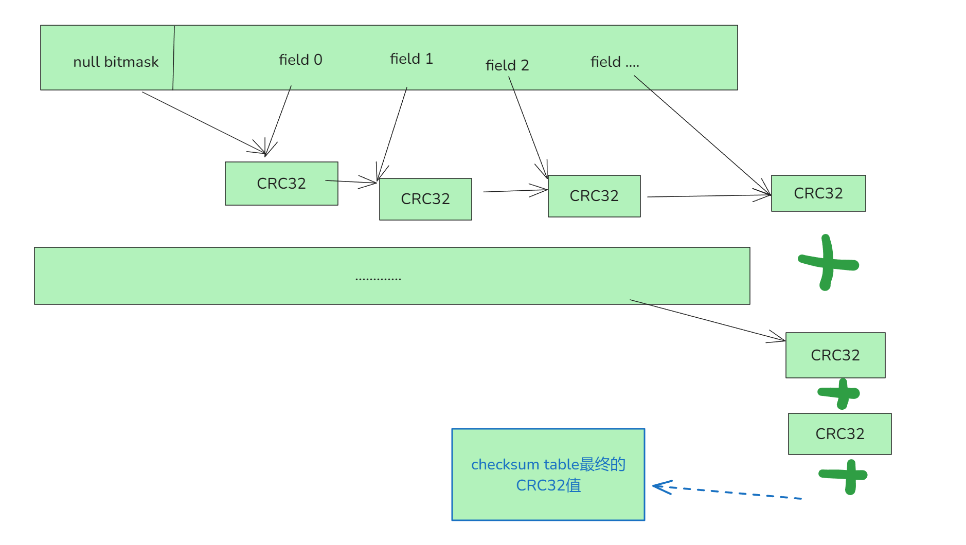 之前我们简单介绍过checksum table的原理, 总结就是: 各行的校验值加起来就是最终的结果.