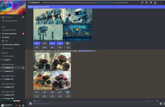 4、首先,请前往其中一个#newbie频道并输入/imagine您想要使用的提示。