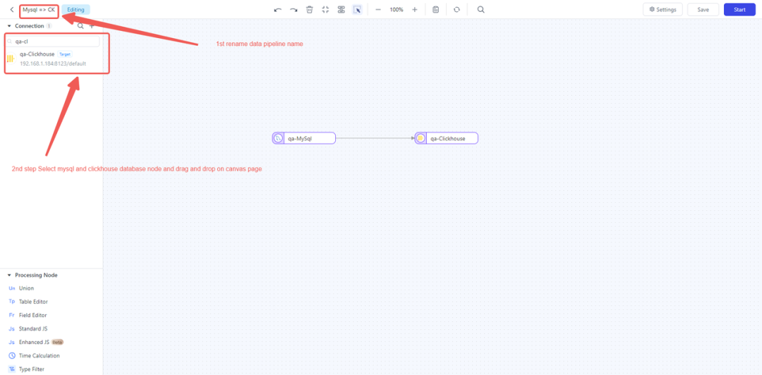 在数据提取之后,需要对数据进行清洗和转换,以适应目标数据库(ClickHouse)的要求。这个环节通常需要使用 ETL 工具或自定义脚本。