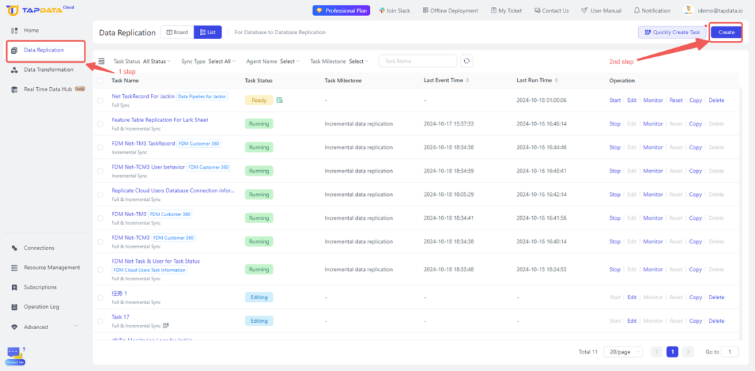 不同于传统方案,利用一些现代化的自动数据移动工具,完成数据从 MySQL、Oracle 或 MongoDB 到 ClickHouse 的同步并不复杂。以 TapData 为例,作为行业内以低延迟数据移动为核心的数据移动工具,它提供了简化的流程,能够高效且准确地处理实时数据复制、实时数据集成与消费等深入数据底层的关键需求。其关键优势在于