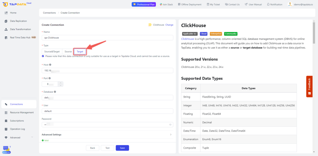 第 2 步:连接目标 ClickHouse 数据库