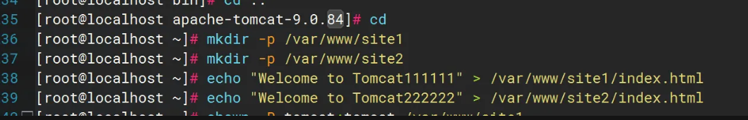 echo "Welcome to Site 2" > /var/www/site2/index.htmlserver.xml 配置文件编辑 Tomcat 的 server.xml 文件:
