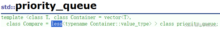 然后我们也要在priority_queue类模板多加一个模板参数Compare,并且给缺省值,默认大的数优先级高,就是大堆。
