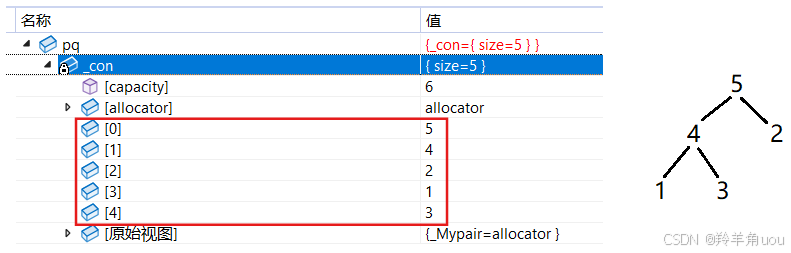插入数据直接用_con的插入,插入完之后,要进行调整,保证这始终是个堆。