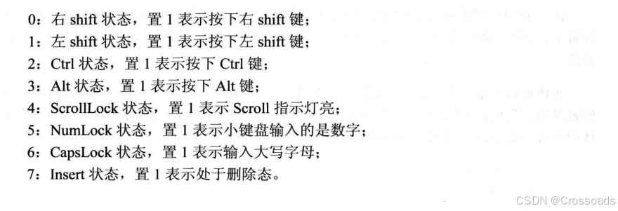 键盘状态字节各位记录的信息如下: