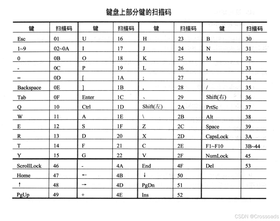 下表是键盘上部分键的扫描码,只列出通码。