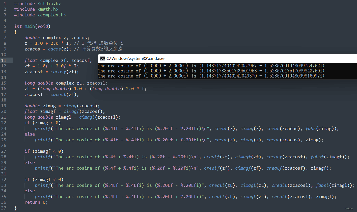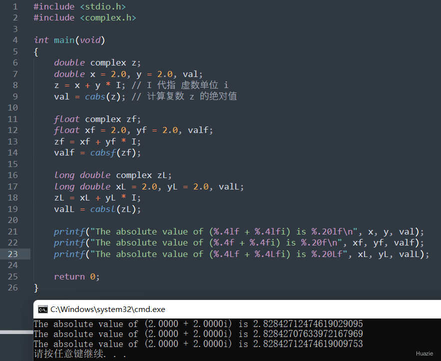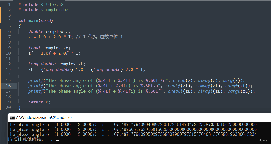 x = 1.0 + 2.0 * I; // I 代指 虚数单位 i