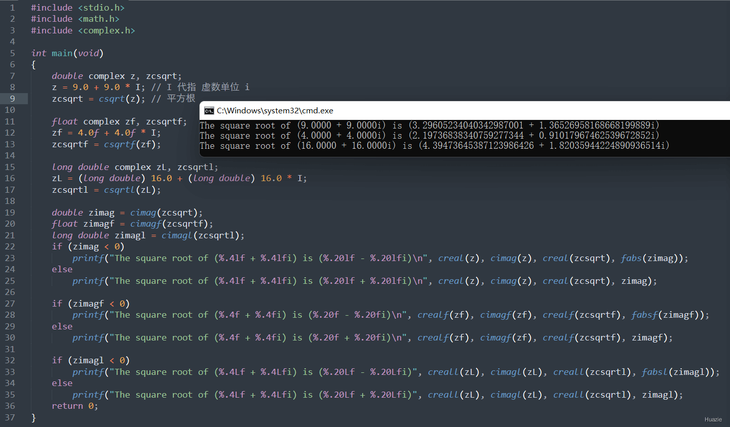 z = 9.0 + 9.0 * I; // I 代指 虚数单位 i