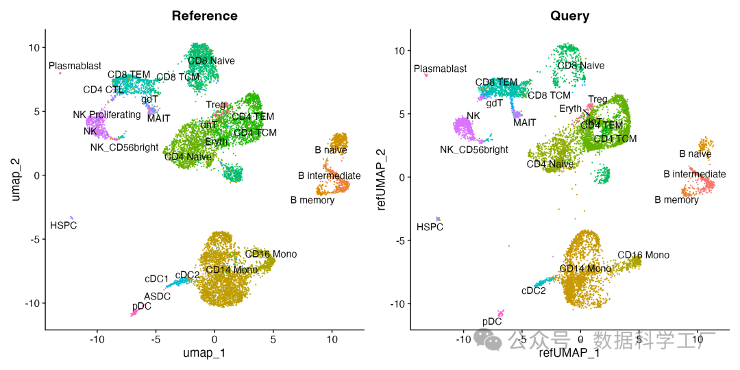 当手头有一个数据量庞大且质量上乘的数据集,或者是一个包含了其他数据集中没有的独特信息(比如细胞类型的标注或额外的数据形式)的数据集时,通常希望将其作为基准数据集,并把查询数据集映射到它上面,这样就能在已有基准的背景下对查询数据集进行解读。