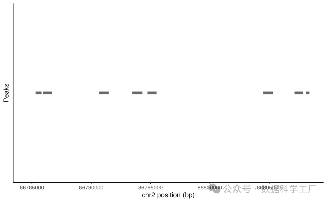 您可以通过 PeakPlot() 函数在特定的基因组区域内绘制出峰值的位置信息。