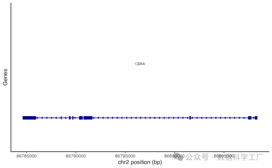还可以通过基因名称请求基因组区域。这将使用 Seurat 对象中存储的基因坐标来确定要绘制的基因组区域
