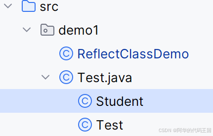 具体操作:我们先在demo1包下创建一个Class文件(名字叫Test),再创建一个Student类如下代码